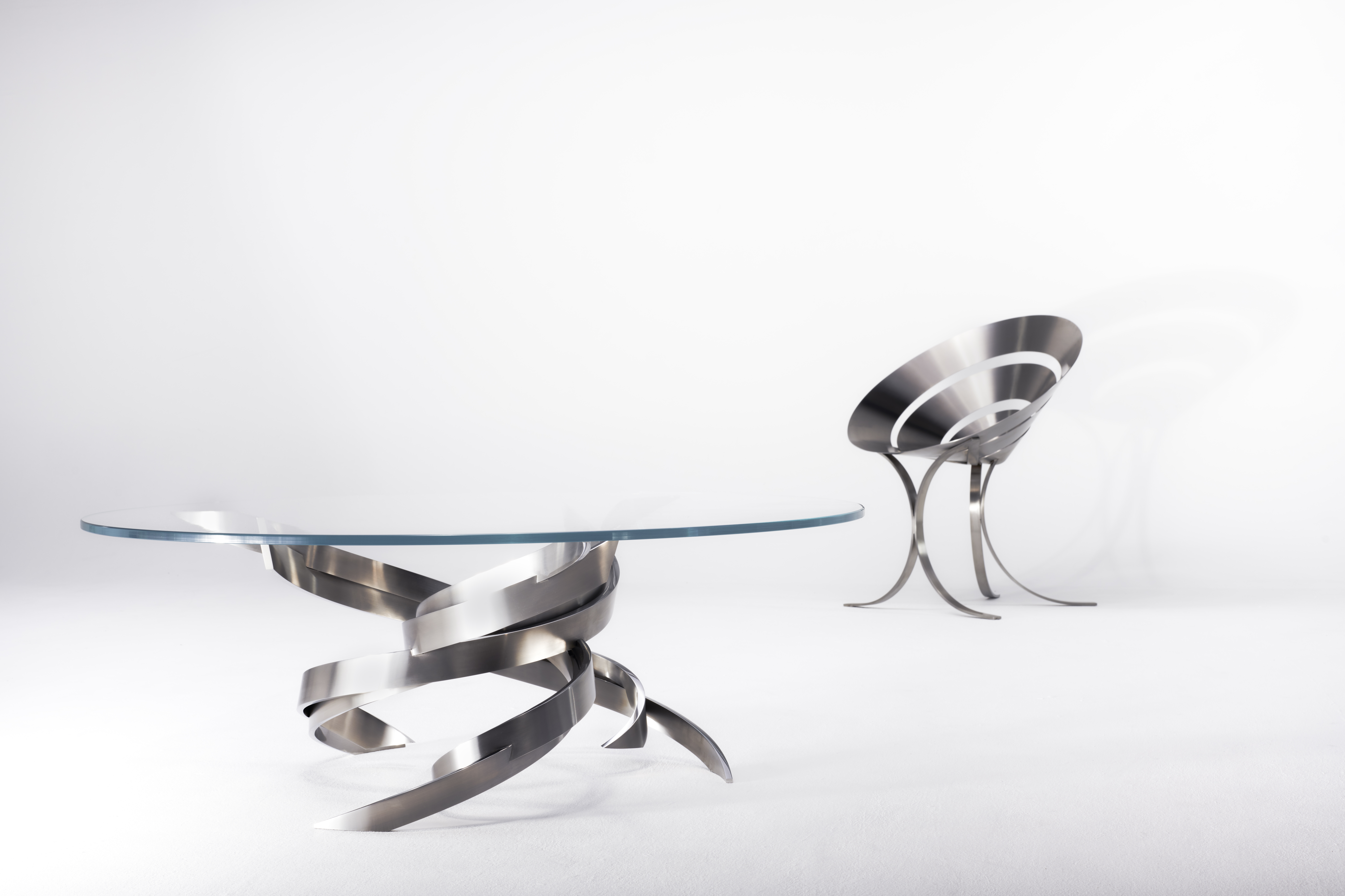 Acier inoxidable, plateau en verre / D. 110 x H. 40 / Edition de 24